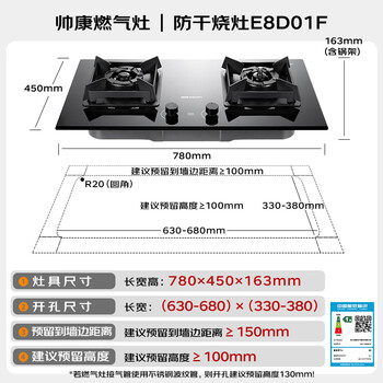帅康(Sacon)燃气灶双灶家用 5.0KW专利防干烧 零秒点火全铜火盖 可调节免扩孔底盘E8D01F天然气