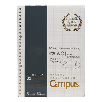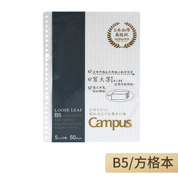 国誉(KOKUYO)B5活页纸Campus活页本替芯笔记本子活页纸内页·高级型 5mm方格 50张1本 WCN-CLH1514