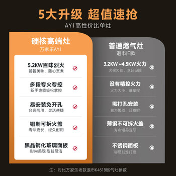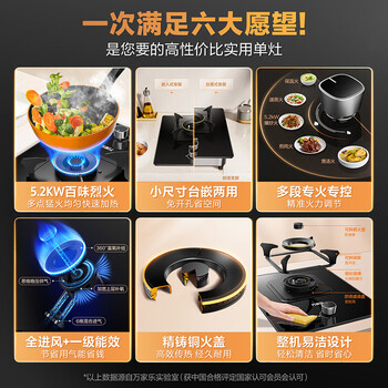 万家乐燃气灶【小飓风AY1】单灶钢化玻璃面板5.2kW大火力嵌入式灶单眼灶家用全进风熄火保护灶具天然气