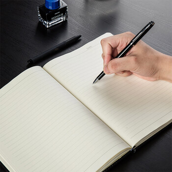 得力(deli)16K大号商务皮面笔记本会议记事本文具办公用品112张/本 黑色3161