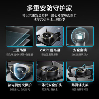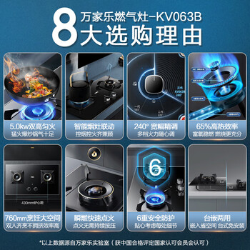 万家乐燃气灶【小鲸喜KV063B】台嵌两用灶 5.0kw大火力嵌入式灶具钢化玻璃立体全进风天然气灶