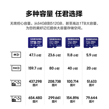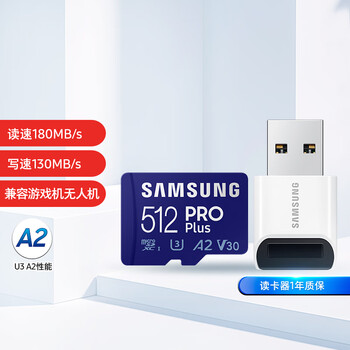三星(SAMSUNG)512GB TF(MicroSD)内存卡读卡器套装 高速PRO蓝卡 U3A2V30 兼容相机 读速180MB/s写速130MB/s