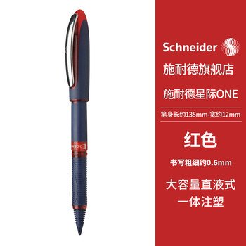 施耐德(Schneider)直液式中性笔 大容量超顺滑签字笔办公学生考试用水笔开学必备用品0.6mm纤维尖星际-红183002