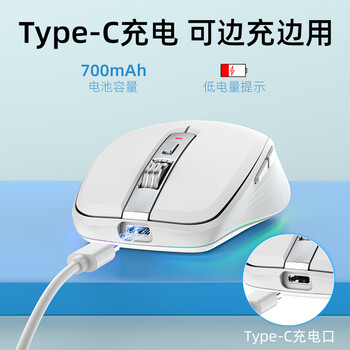 玲魅Linmath 鼠标无线4档DPI办公鼠标小巧易带便携可充电双模连接 M303白色