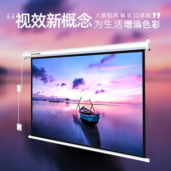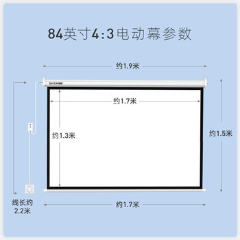 设彩(SHECAI)84英寸电动投影幕布4:3投影布家用遥控自动升降壁挂幕室内家庭影院投影仪幕布70201白玻纤