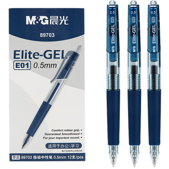 晨光(M&G)文具E01 按动中性笔学生0.5签字笔商务子弹头水笔医生处方笔办公用品 墨蓝色 12支/盒