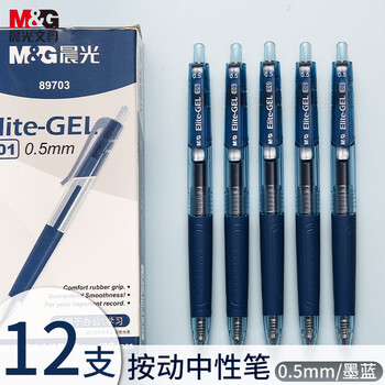 晨光按动子弹头中性笔签字笔水笔0.5mm12支/盒墨蓝
