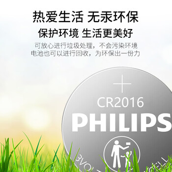 飞利浦(PHILIPS)CR2016纽扣电池2粒3V锂电池适用丰田比亚迪奔驰景逸等汽车钥匙遥控器手表血糖仪电池cr2016