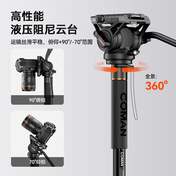 科漫(COMAN)独脚架单反摄像机碳纤维独脚架支架专业摄像机单脚架液压阻尼云台摄影三脚架相机支架KX3535