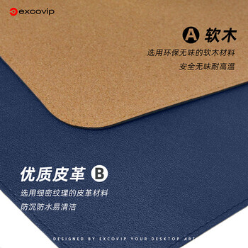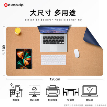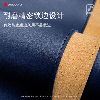 宜适酷(EXCO)1.2米软木防水皮质鼠标垫超大号电脑办公写字台桌垫皮革桌布特大号游戏键盘垫子魅力蓝9779
