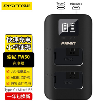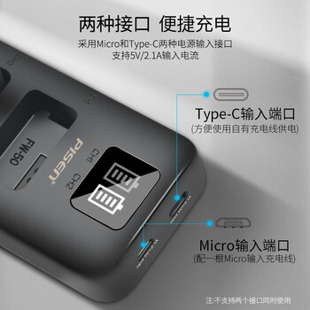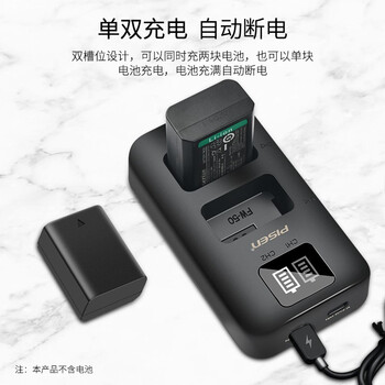 品胜索尼FW50相机电池充电器 适用A6000 A5000 A5100 A6300 A7RII单反相机双槽座充电