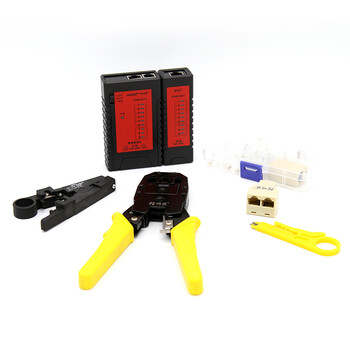工具包*1 5001三用网线钳*1 468网络测试仪*1 6P/6C电话水晶头*15超五类水晶头*15 8P直通*1 小号收纳盒*1 黄色小剥线刀*1 9V电池*2 501黑色剥线刀*1 468说明书*1