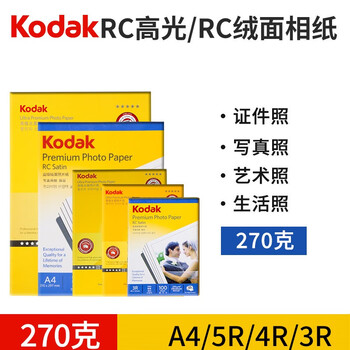 KODAK柯达 3R/5英寸 270g绒面RC防水相纸/喷墨打印照片纸 100张装 9891-049