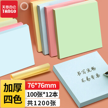 天章(TANGO)4色便利贴便签纸76*76mm记事贴百事贴N次贴备忘自粘标签贴 记录留言重点归类1200张 办公学习文具