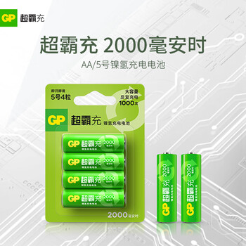 超霸(GP)充电电池5号4粒2000mAh镍氢电池 适用于适用相机/闪光灯/游戏手柄/血压计/遥控玩具车5号/AA