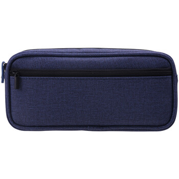 得力(deli)多层大容量笔袋 仿亚麻多功能文具盒 学生铅笔收纳袋/商务包 深蓝色开学必备