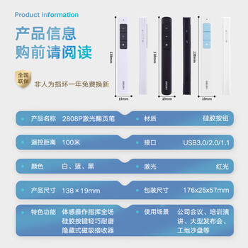 得力(deli)(deli)激光笔 百米远控 教师专用 翻页笔 激光翻页笔 ppt课件翻页笔 无线演示器 逗猫笔红光2808P