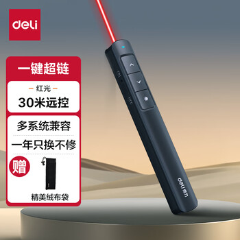 得力(deli)激光笔 360度控制教师专用ppt超链切换教鞭无线演示器课件笔 红光激光翻页笔 黑色 2808L