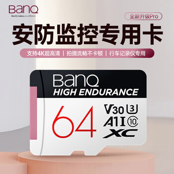 banq 64GB TF(MicroSD)存储卡 A1 U3 V30 4K 行车记录仪&安防监控专用内存卡 高度耐用 读速100MB/s