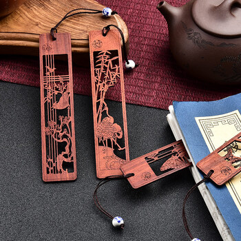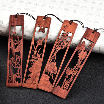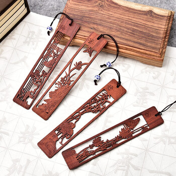 【全网低价】米兹MIEZ小叶紫檀梅兰竹菊木质书签四件套礼盒中国风教师节礼物送老师长辈公司年会礼品生日礼物