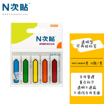 N次贴(STICKN) 100张箭头5色荧光膜指示标签贴45*12mm分类索引便利贴记事贴34033