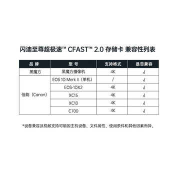 闪迪(SanDisk)128GB CFast 2.0存储卡 VPG-130 4K 至尊超极速版单反相机内存卡 读速525MB/s 写速450MB/s