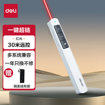 得力(deli) 激光笔360度控制教师专用ppt超链切换教鞭无线演示器笔 红光充电激光翻页笔 白色 2808L