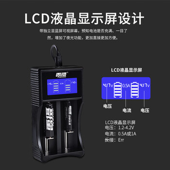 雷摄 LEISE U218A两槽多功能充电器 适用于:1-2节18650/18500/14500/16340锂电池充电