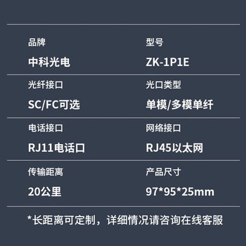 电脑、办公---网络产品---网络配件中科光电ZK-1P1E-20KM/FC
