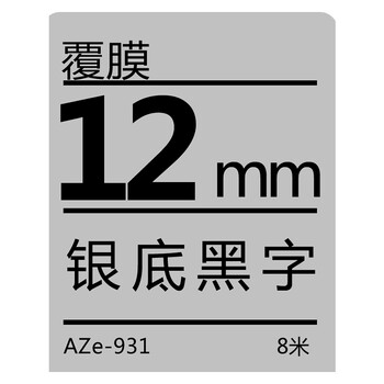 得印标签机色带不干胶标签纸色带12mm AZe-931银底黑字TZc TZe适用兄弟PT-E115B PT-D210 PT-P300BT