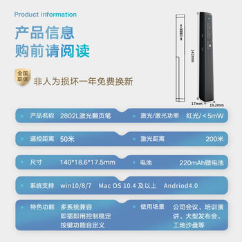 得力(deli)激光翻页笔 360度控制 激光笔 教师充电款超链切换教鞭/无线演示器 ppt翻页笔 黑色 2802L