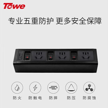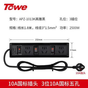 TOWE同为桌面pdu分控插排工业插座接线板拖线板插电板单控3位10A国标五孔 APZ-1013K高雅黑