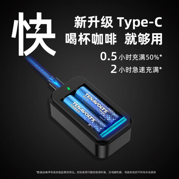 南孚5号充电锂电池2粒套装 1.5V恒压快充 TENAVOLTS Type-C充电 适用VR设备/游戏手柄/吸奶器等 AA五号