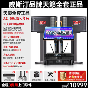 威斯汀音响家庭ktv唱歌全套设备 卡拉ok点歌机语音点唱 高端大功率12吋四分频音箱套装天籁+K5