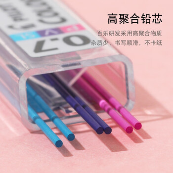 百乐(PILOT)彩色0.7自动铅笔笔芯小学生专用练字儿童铅笔芯文具 PLCR-7-PVSL 0.7mm 粉/紫/浅蓝 3色6根装
