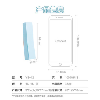 晨光(M&G)文具100张3色便利贴 粘性标签贴姓名贴三分条 76*17mm记事留言贴优事贴便签本子 3条装YS-12