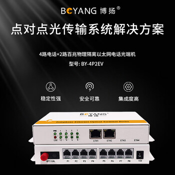 博扬(BOYANG)电话光端机4路电话+2路百兆物理隔离网 语音音频光端机 电话光纤收发器 光纤FC接口 BY-4P2EV