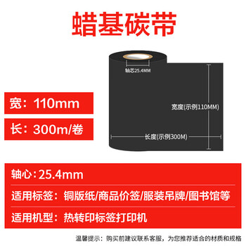 e代碳带 110mm*300m蜡基碳带 碳带卷 适用tsc台半ttp-244pro热转印打印机标签机条码机色带