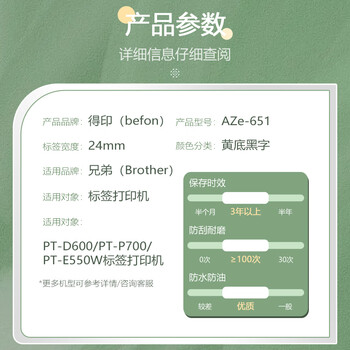 得印标签机色带不干胶标签纸色带24mm AZe-651黄底黑字TZc TZe 适用兄弟PT-D600 PT-E550W PT-P700