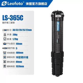 徕图(Leofoto)三脚架 碳纤维无中轴摄影摄像拍鸟打鸟长焦稳定相机单反微单三脚架 LS-365C(单三脚架)