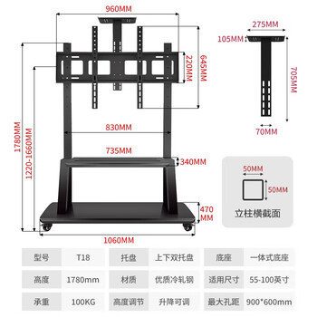 MS移动电视支架 55-100英寸 落地电视挂架电视推车 视频会议显示屏推车小米海信创维飞利浦通用 T18