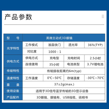 英微(IN&VI)主动快门式家用3D眼镜×1,3D眼镜包装盒×1