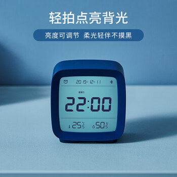 青萍蓝牙闹钟 智能温湿度监测多功能背光床头桌面学生接入米家 蓝色