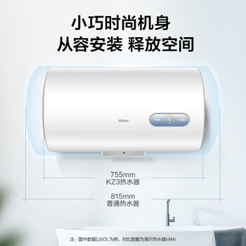 海尔电热水器60升KZ3搪瓷无缝内胆租房优选一级能效节能2200W速热家用洗澡小型储水式上门安装