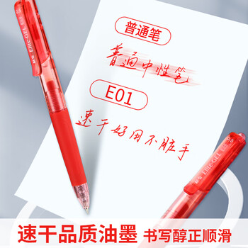晨光(M&G)文具E01按动中性笔学生0.5红笔签字笔商务子弹头水笔高颜值办公用品红色12支/盒