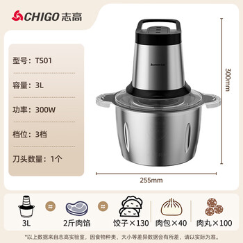 志高(CHIGO)绞肉机3升家用绞馅机304不锈钢多功能电动料理辅食机3L搅拌碎肉切菜机大容量饺子肉馅蒜蓉机 ts01
