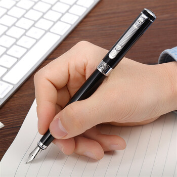 毕加索(pimio)美工笔弯头弯尖硬笔书法钢笔开学礼物男女士练字学生用笔1.0mm902亮黑银夹
