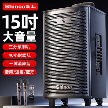 新科 (Shinco)T30广场舞音响户外大音量拉杆蓝牙音箱三喇叭重低音木质箱体家用K歌移动摆摊 15吋双咪