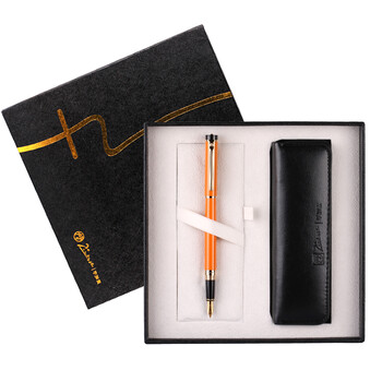 毕加索(pimio)钢笔礼盒装 签字笔 笔袋套装商务办公送礼男女生日礼物学生练字成人礼品笔5510橙黄色