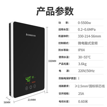 志高(CHIGO)即热式电热水器5500W超薄小厨宝恒温出租房家用洗澡KBR-F60_F60